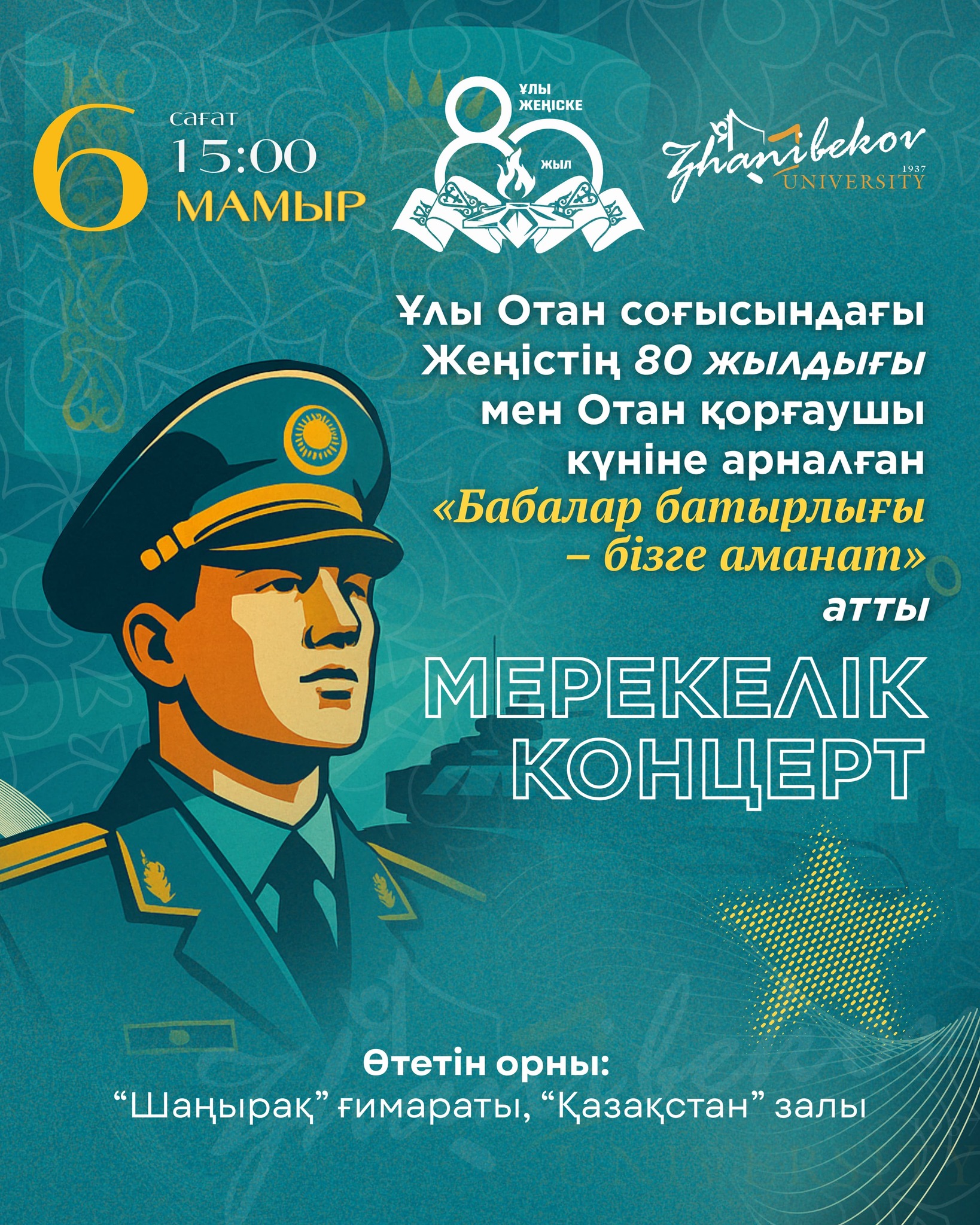 Ұлы Отан соғысындағы Жеңістің 80 жылдығы мен Отан қорғаушылар күніне арналған «Бабалар батырлығы – бізге аманат» атты мерекелік концертіне шақырамыз