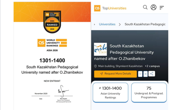 ZHANIBEKOV UNIVERSITY – ӘЛЕМДІК QS ASIA UNIVERSITY RANKINGS — 2026 РЕЙТИНГІНДЕ!