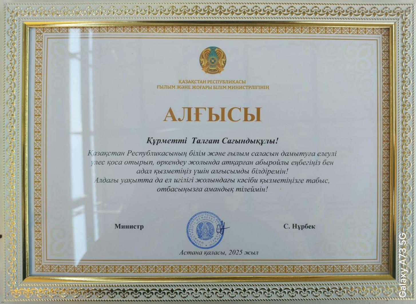 ҚР президентінің алғыс хаты. У.Байбатырова