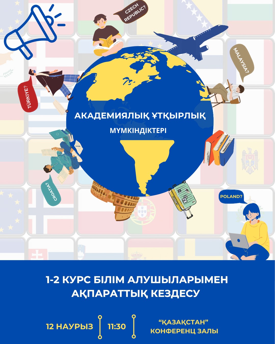 Сіз жетекші шетелдік университеттерде оқудың бірегей мүмкіндігін пайдаланғыңыз келе ме? Сізді академиялық ұтқырлық бойынша ақпараттық кездесуге шақырамыз!