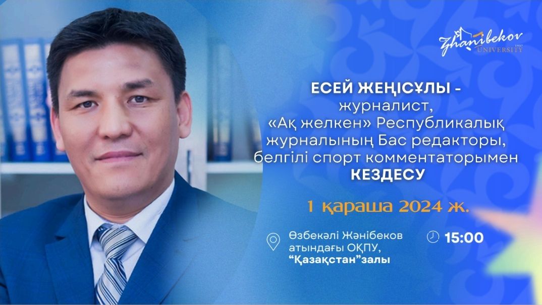 Журналист, «Ақ желкен» Республикалық журналының Бас редакторы, белгілі спорт комментаторы ЕСЕЙ ЖЕҢІСҰЛЫМЕН кездесуге шақырамыз!