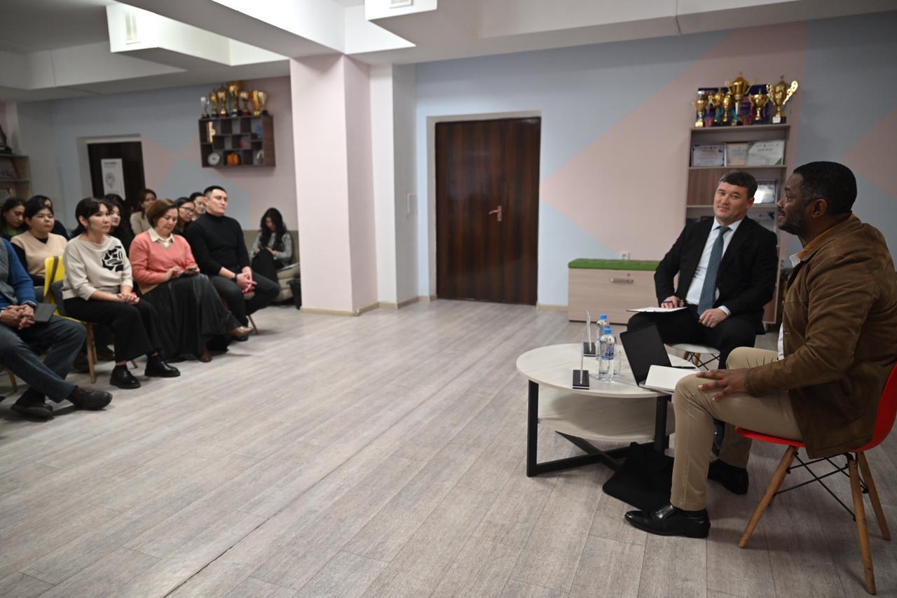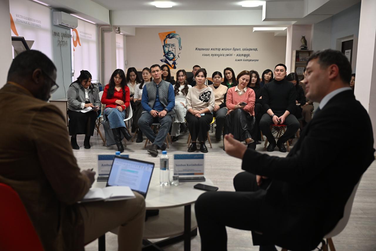 Өзбекәлі Жәнібеков атындағы ОҚПУ-да магистранттар мен докторанттарға арналған ерекше кездесу өтті. Білім беру мәселелері тақырыбында Оңтүстік Африка Университетінің PhD, профессоры Энтони Браун мен университеттің Ғылыми жұмыстар және инновациялар жөніндегі проректоры Керімбеков Ержан Рахымжанұлы арасында диалог форматында ашық пікір алмасты. Бұл кездесуде білім саласына қатысты өзекті мәселелер жан-жақты талқыланды.