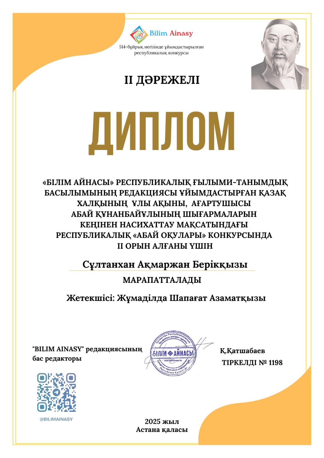 Байниязов А.Ж.– «ЖЫЛ АДАМЫ – 2025» жеңімпазы