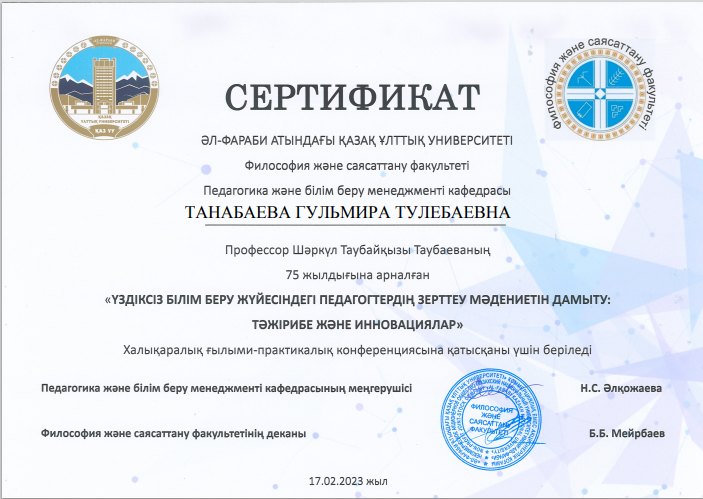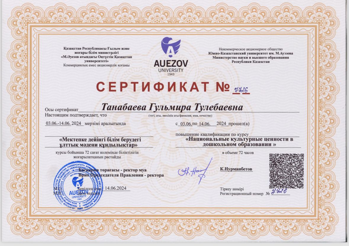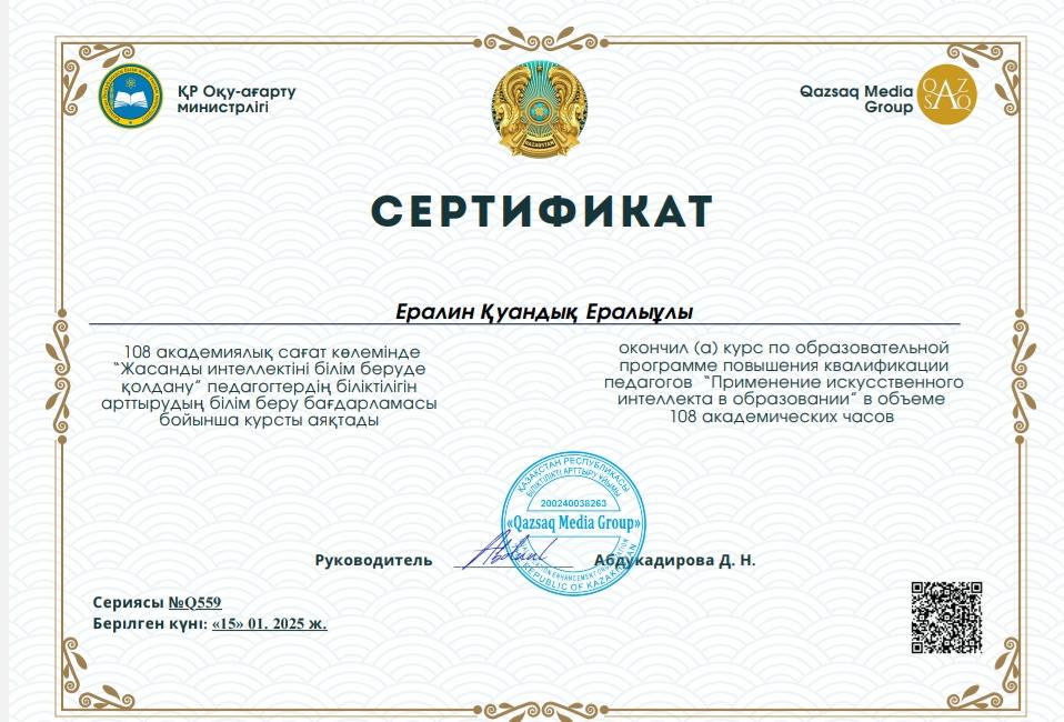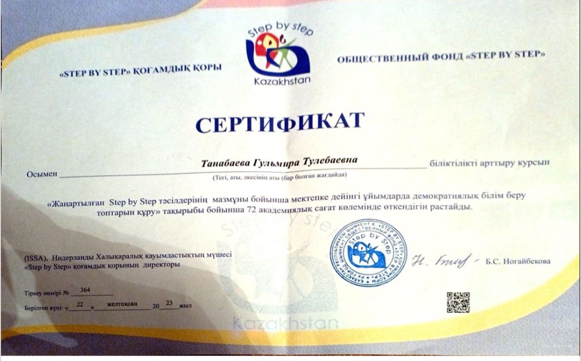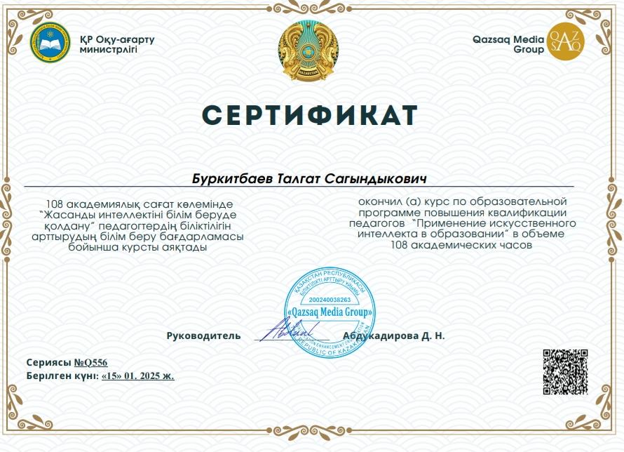 Біліктілік арттыру курсы. Сертификат. Алғыс хат.
