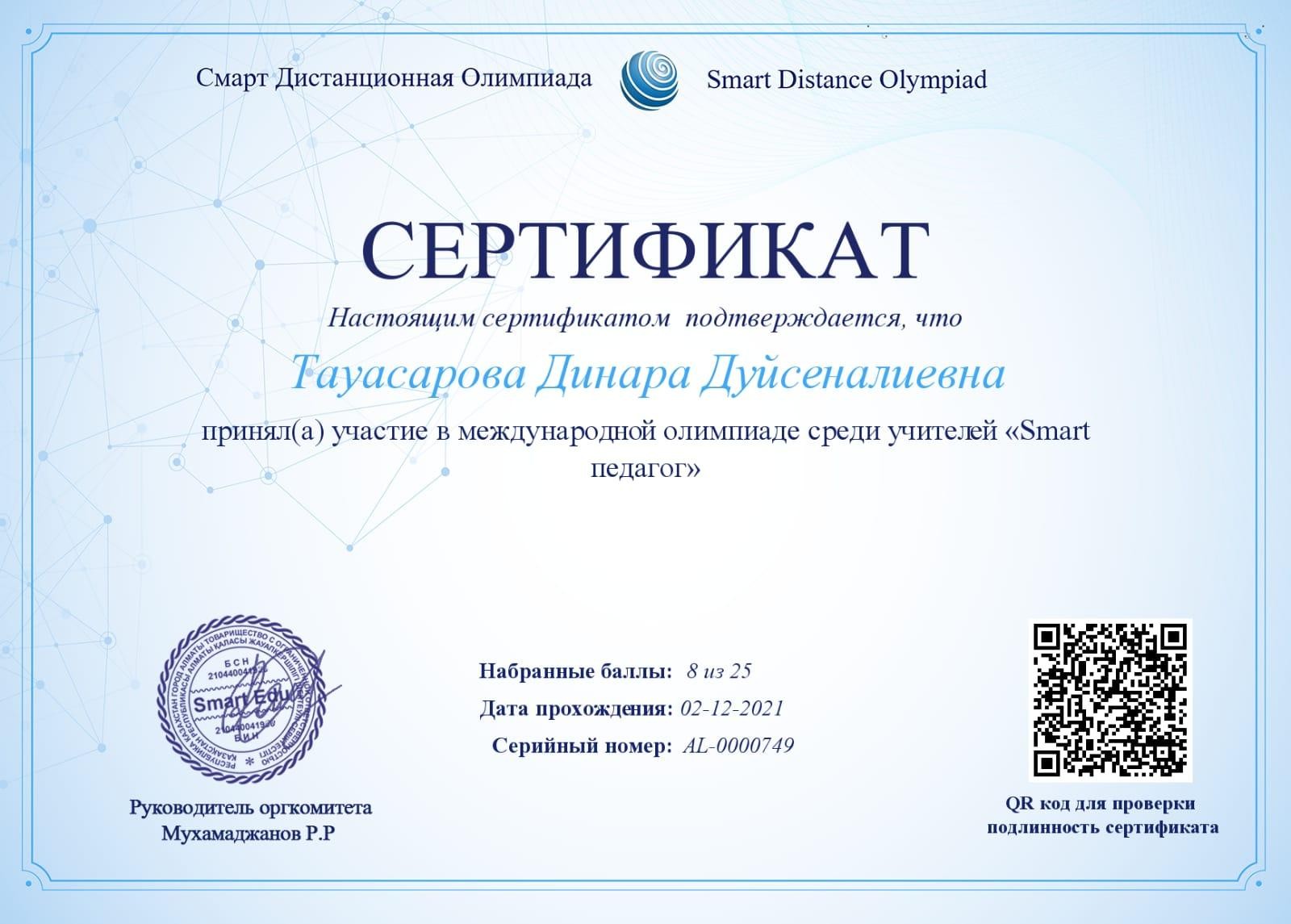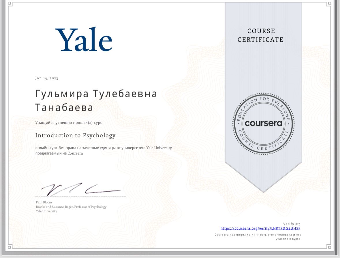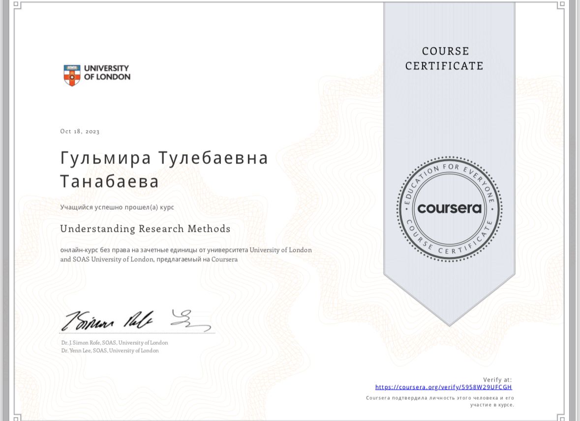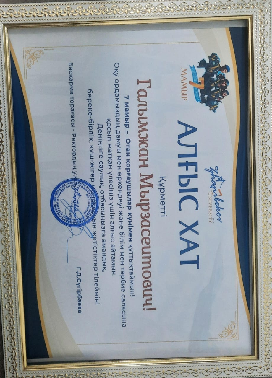 Біліктілік арттыру курсы. Сертификат. Алғыс хат.