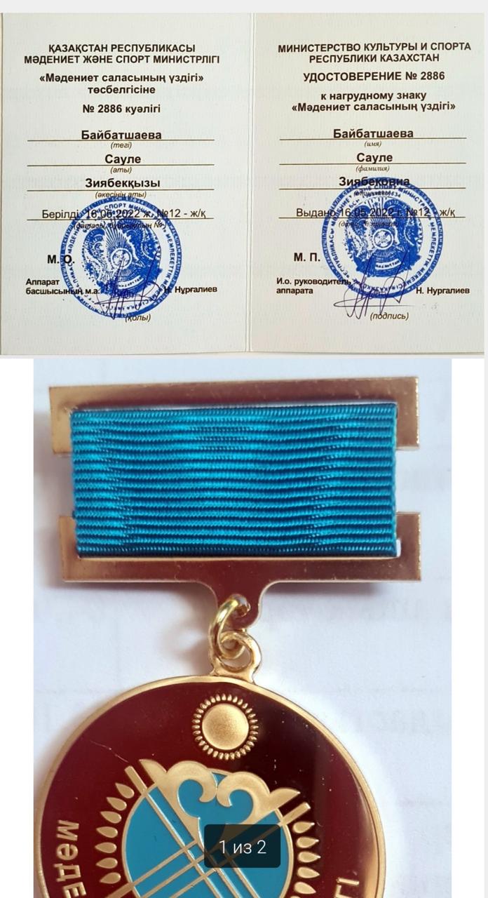 ҚР Мәдениет саласының үздігі- С.З.Байбатшаева