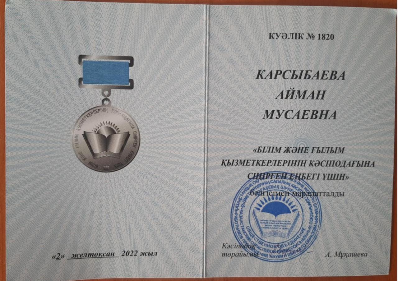 Кәсіподақ төсбелгісі. Карсыбаева А.